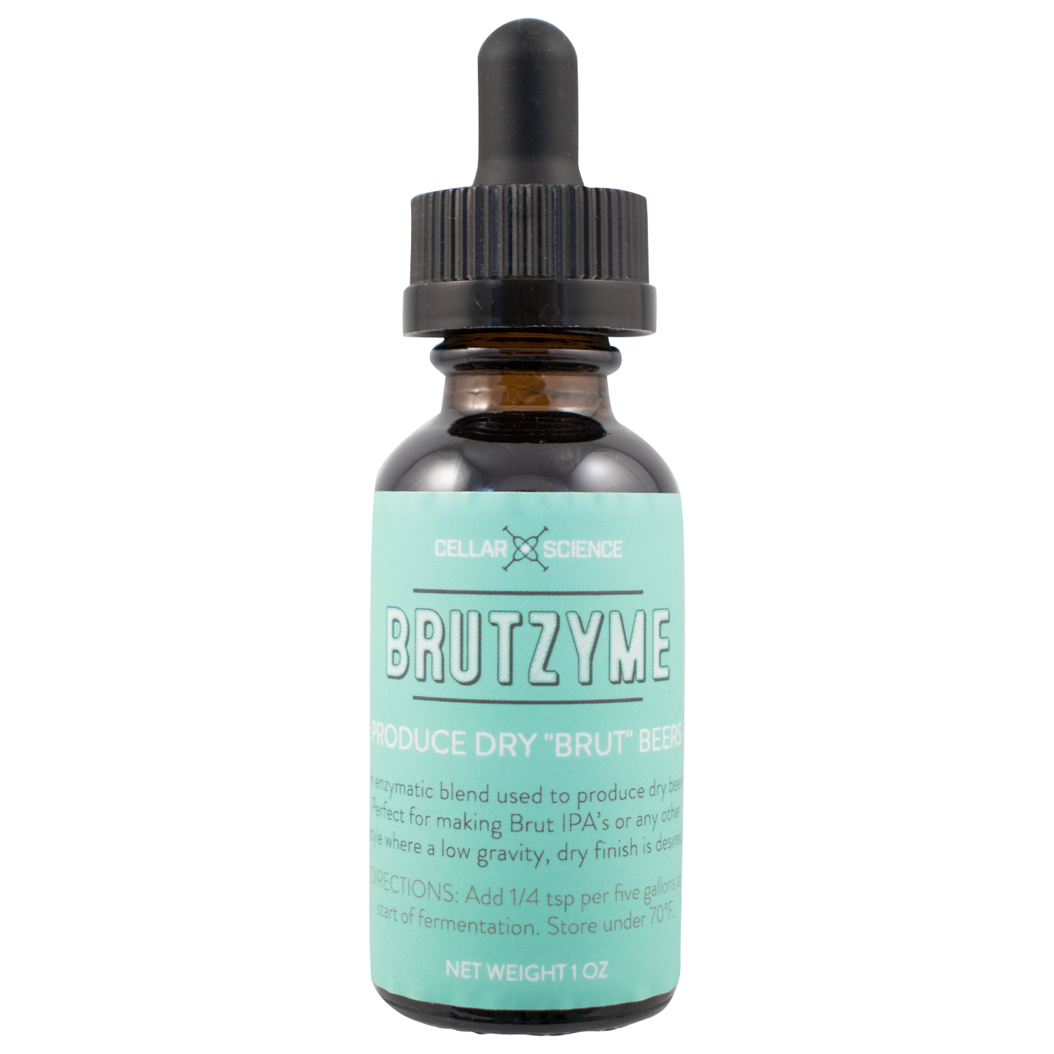 Brutzyme is an enzymatic blend used to produce dry beers. Amyloglucosidase, alpha amylase, and pullulanase enable the hydrolysis of starch and dextrins into fermentable sugars that yeast can ferment. Perfect for making Brut IPAs or any other style where a low gravity, dry finish is desired.