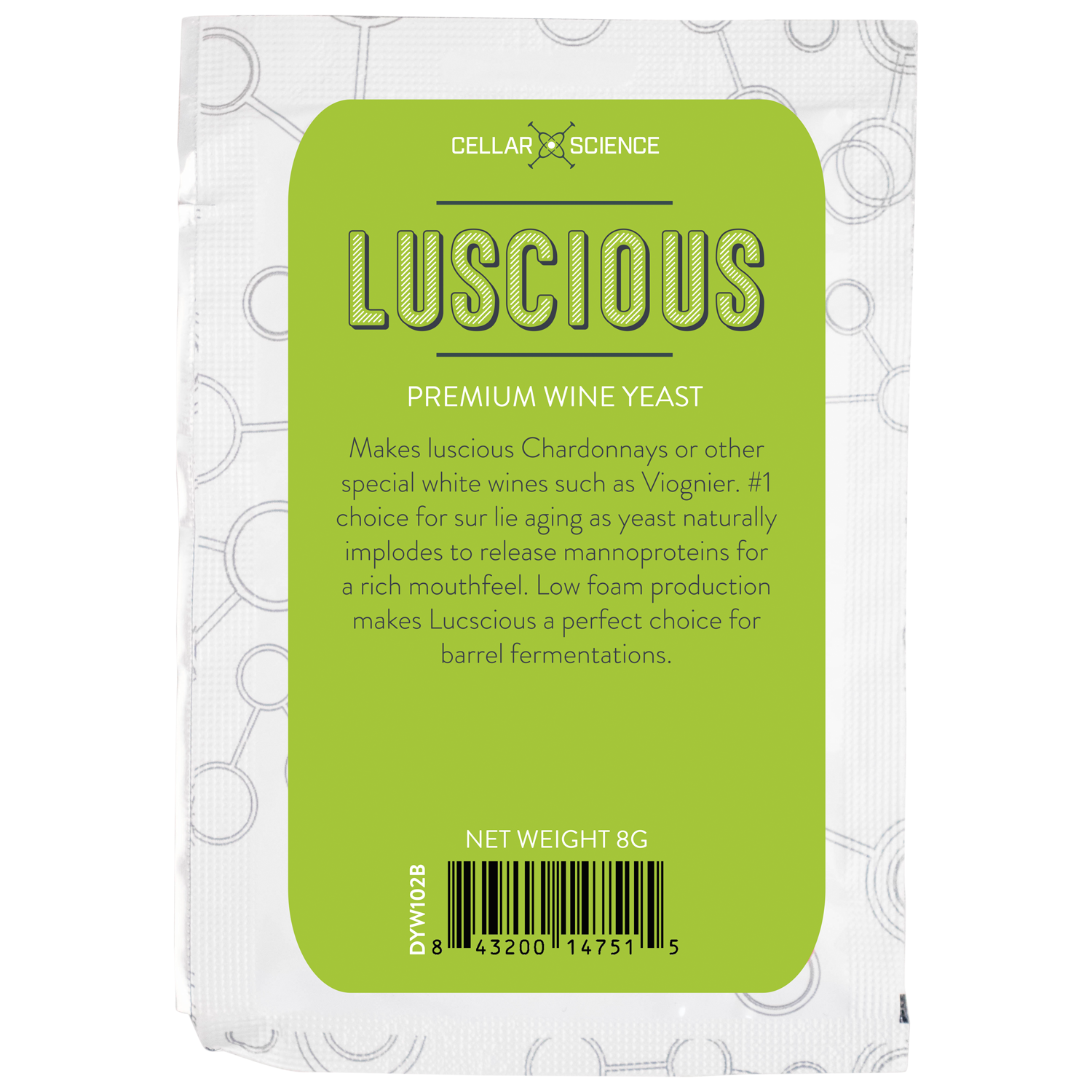 Luscious Chardonnays with creamy mouthfeel and deep complexity... if that is your end point, LUSCIOUS is your starting point. LUSCIOUS can be fermented at different temps depending on your style preference. Ferment it cooler, it can handle it, and put the emphasis on the creaminess and the toasted champagne-like complexity of sur lie ageing. Or crank it up a bit warmer and add in some more tropical notes, your choice. However the magic of LUSCIOUS really happens after fermentation when this yeast goes naturally goes nuclear, implodes and breaks open its cell walls, during a process called autolysis. Polysaccharides such as mannoproteins are released into the wine... and man, it's all about those mannoproteins creating that rich, creamy mouthfeel that so many Chardonnay drinkers seek out. The silky richness is emphasized even futher by sur lie aging, aging on clean lees for a period of time, in either tank or barrel. Being a low producer of SO2 it is naturally great candiate for later malo-lactic fermentations. Now that we have painted a picture try putting this marketing wizardry on your next label "The 10-40w viscosity of this wine is due to it being loaded with mannoproteins from the guts of exploded yeast cells". Maybe leave us out of the wine marketing department but we do know a winning yeast when we taste it. #1 for this style of Chardonnay but also a top choice for Viognier and other whites.