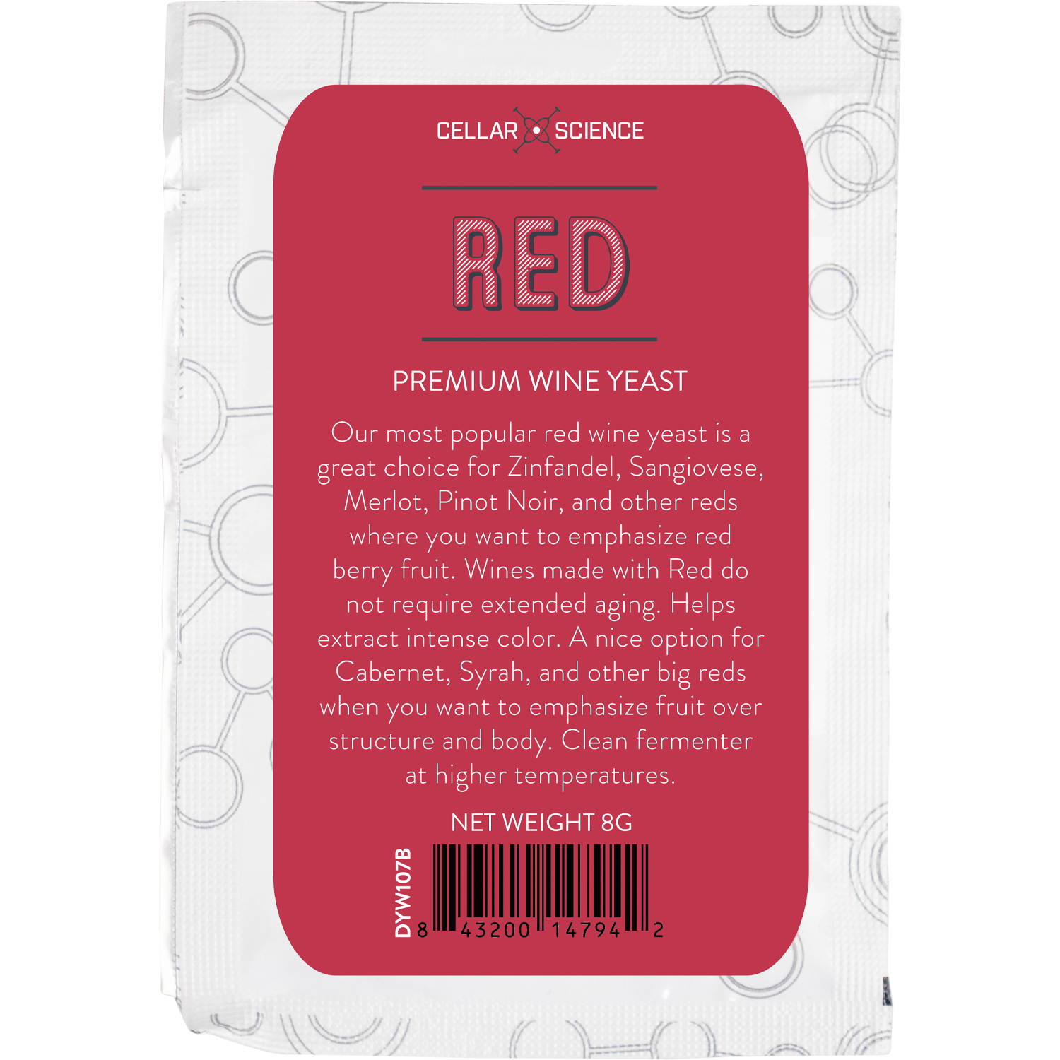 Our most popular red yeast is a perfect choice for Pinot Noir, Zinfandel, Sangiovese, Merlot and other reds where you want to emphasize red fruit flavors. When compared with BIG RED or PURPLE, RED is less about structure and body and more about fruit. Fantastic by itself if you plan to blend separately fermented lots back together. RED is a great choice to contribute red berry flavor. Also known to help produce intense color. Also a great choice for Cabernet, Syrah and other traditinoal big red varietals where you would like to emphasize fruit over structure and body. Because RED ferments cleaner than most yeast at high temperatures, it is the perfect choice if you are fermenting in a warm environment and do not have temperature control. It does not produce much SO2 so it is a great choice for easier ML fermentations.